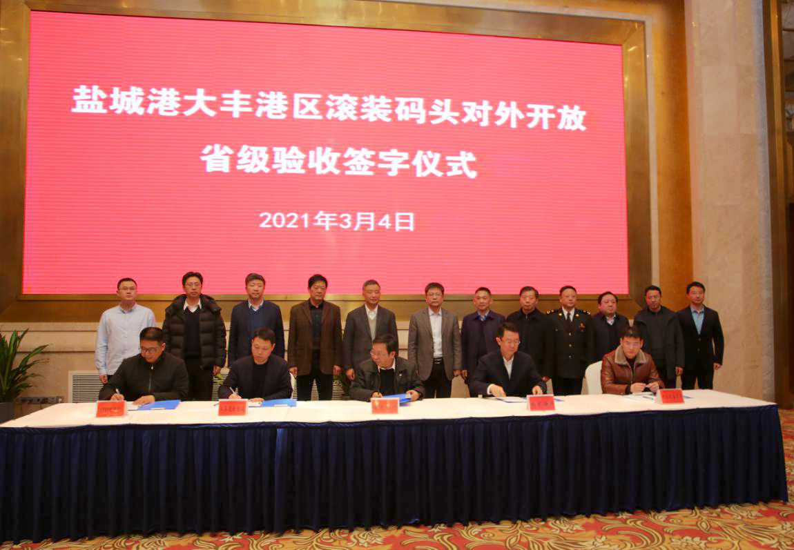 3月4日,由江蘇省商務廳、南京海關、江蘇邊檢總站、連云港海事局等查驗單位負責人組成的驗收組,對鹽城港大豐港區滾裝碼頭對外開放進行省級驗收。副市長蔣巍出席并致辭、市相關部門同志參加。鹽城港集團黨委書記、董事長、總經理周正雄參加并介紹相關情況。