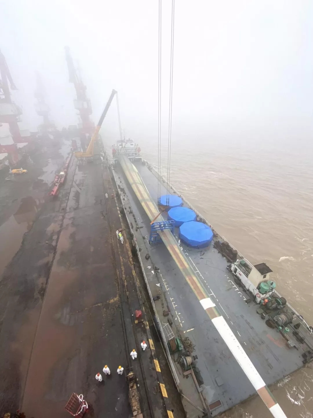 據悉,此前大豐港區吊裝的最長的風電葉片是90米,為確保本次葉片的成功出運,碼頭吊裝團隊經過多次推演和模擬練習,最終采用了“門機+汽吊”協同抬吊的方式?!帮L電葉片葉根部分重達50多噸,我們創新改變了之前的吊裝方式,利用500噸吊車吊裝葉根部分與碼頭門機吊裝葉尖部分相配合,成功吊運裝船。經過測算,以這種協同抬吊的方式最為安全?!贝a頭吊裝負責人介紹道。此次風電葉片從起吊到裝運上船,整個過程持續不到20分鐘,充分展示了鹽城港大豐港區出色的重大件吊裝技藝。