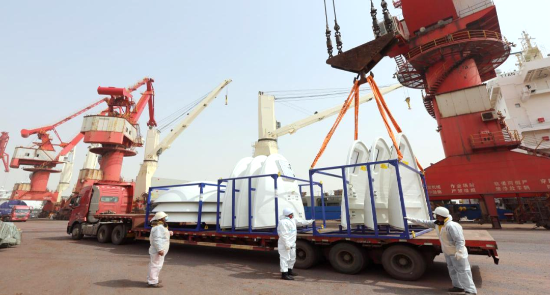 金風科技公司作為鹽城港的重要客戶之一,近年來,在“3060”碳排放目標和“2030年風、光累計并網不低于12億千瓦”的背景下,加快科技創新,產能迅速擴張,其對高效、便捷的物流運輸需求也隨之加大。