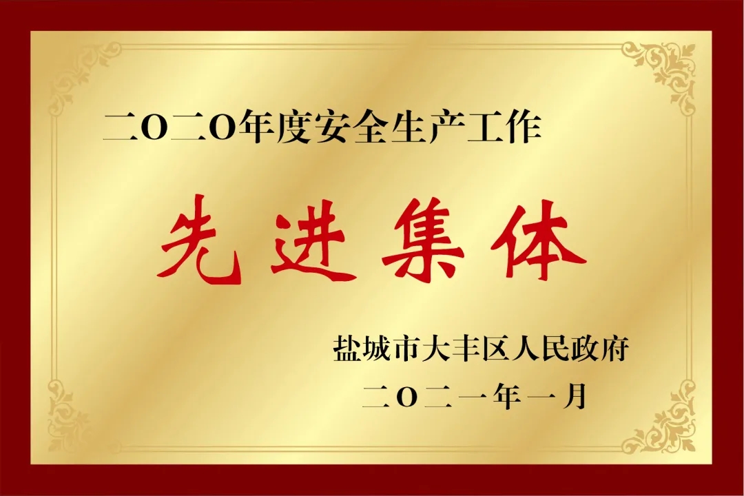 近日,大豐港區港口公司榮獲鹽城市大豐區人民政府2020年度全區安全生產工作先進集體稱號。