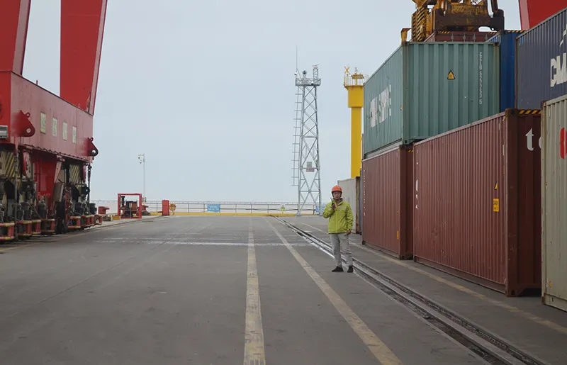 丁健同志現(xiàn)場指揮集裝箱作業(yè)