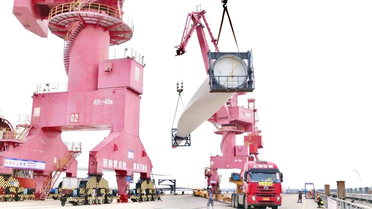 日前,記者走進(jìn)鹽城港射陽(yáng)港區(qū),多輛大件運(yùn)輸車正將風(fēng)電葉片運(yùn)往碼頭。在吊鉤固定完成后,操作人員操控起重機(jī)將葉片及配套工裝緩緩吊運(yùn)至貨輪,并精準(zhǔn)安放在指定位置。現(xiàn)場(chǎng)作業(yè)人員全神貫注,確保每片葉片都能安全、準(zhǔn)確地完成裝載,整個(gè)碼頭呈現(xiàn)出一派熱火朝天的作業(yè)景象。