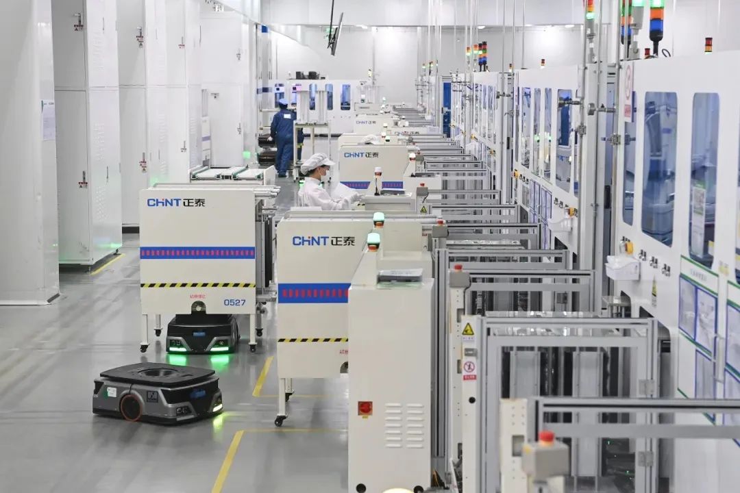 鹽城南部的滬蘇大豐產業聯動集聚區,塔吊林立,卡車穿梭。在園區內的正泰新能鹽城基地,車間里的各條生產線有條不紊地運行。