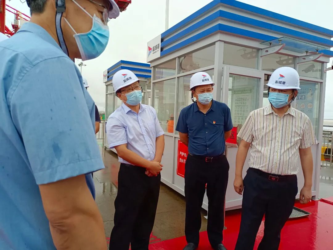 9月29日,省水路口岸疫情防控專項督查組成員、南京海關衛(wèi)生檢疫處一級調研員張純率隊前往鹽城港大豐港區(qū),就涉外口岸疫情防控工作進行督導檢查。市交通運輸局黨委委員、副局長趙飛,集團黨委委員、董事、副總經理陳正華,鹽城海關、鹽城出入境邊檢站相關負責同志參加。