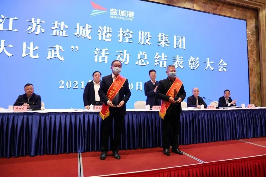 會議宣讀了《關于表彰鹽城港集團“50天大比武”活動優秀團隊和優秀個人的決定》,并為受表彰的優秀團隊和優秀個人代表進行頒獎。4名獲獎代表作交流發言。