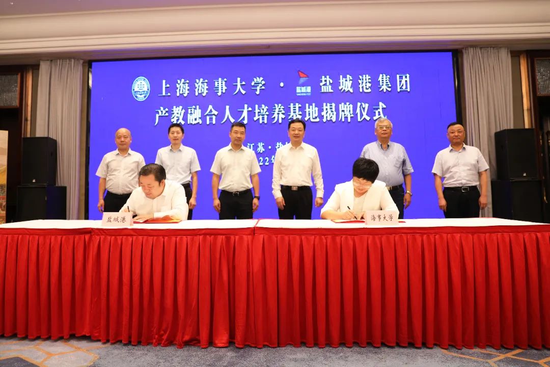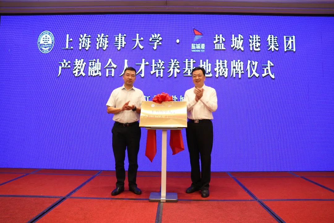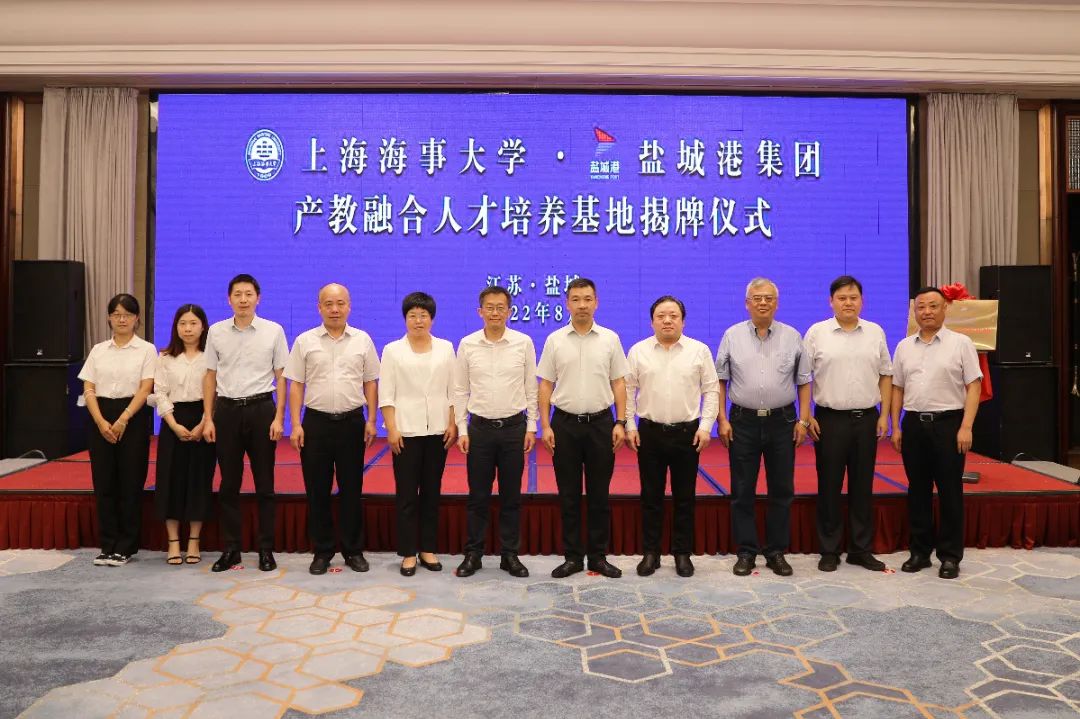 8月4日上午,上海海事大學—鹽城港集團產教融合人才培養基地揭牌儀式在鹽成功舉行。上海海事大學黨委副書記、副校長李志鵬,市委常委、組織部部長費堅出席并致辭。集團黨委書記、董事長、總經理周正雄,上海高級國際航運學院院長、教授張麗娟分別介紹相關情況并簽約。市委組織部部務會成員、市委人才工作領導小組辦公室副主任倪一華主持活動,集團黨委委員、紀委書記周旭東,集團黨委委員、董事、副總經理丁安廣等參加。