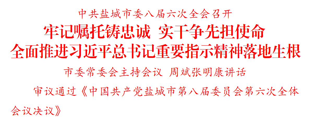 全會審議通過《中國共產(chǎn)黨鹽城市第八屆委員會第六次全體會議決議》,討論了《中共鹽城市委常委會2023年度工作情況報(bào)告》《中共鹽城市委常委會2023年度落實(shí)全面從嚴(yán)治黨主體責(zé)任情況報(bào)告》。