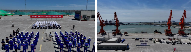 為深入宣傳貫徹習(xí)近平總書記關(guān)于應(yīng)急管理的重要論述,認(rèn)真落實(shí)國(guó)務(wù)院和省、市安委會(huì)關(guān)于“安全生產(chǎn)月”活動(dòng)部署要求,扎實(shí)推進(jìn)集團(tuán)安全生產(chǎn)治本攻堅(jiān)三年行動(dòng),切實(shí)增強(qiáng)全員安全意識(shí)和應(yīng)急救援能力。6月27日上午,2024年安全生產(chǎn)綜合應(yīng)急演練在鹽城港濱海港區(qū)1號(hào)碼頭舉辦。