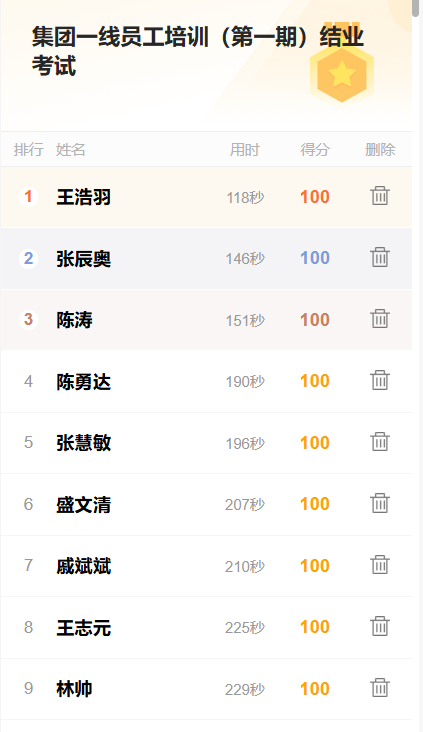 本次培訓(xùn)立足降本增效,創(chuàng)新采用電子簽到、無紙化智能考試,一方面節(jié)約了時間、人力、紙張成本,另一方面省略了會前簽到、批改試卷、統(tǒng)計排名等環(huán)節(jié),大大提高工作效率,推動培訓(xùn)工作的信息化管理邁上新臺階。