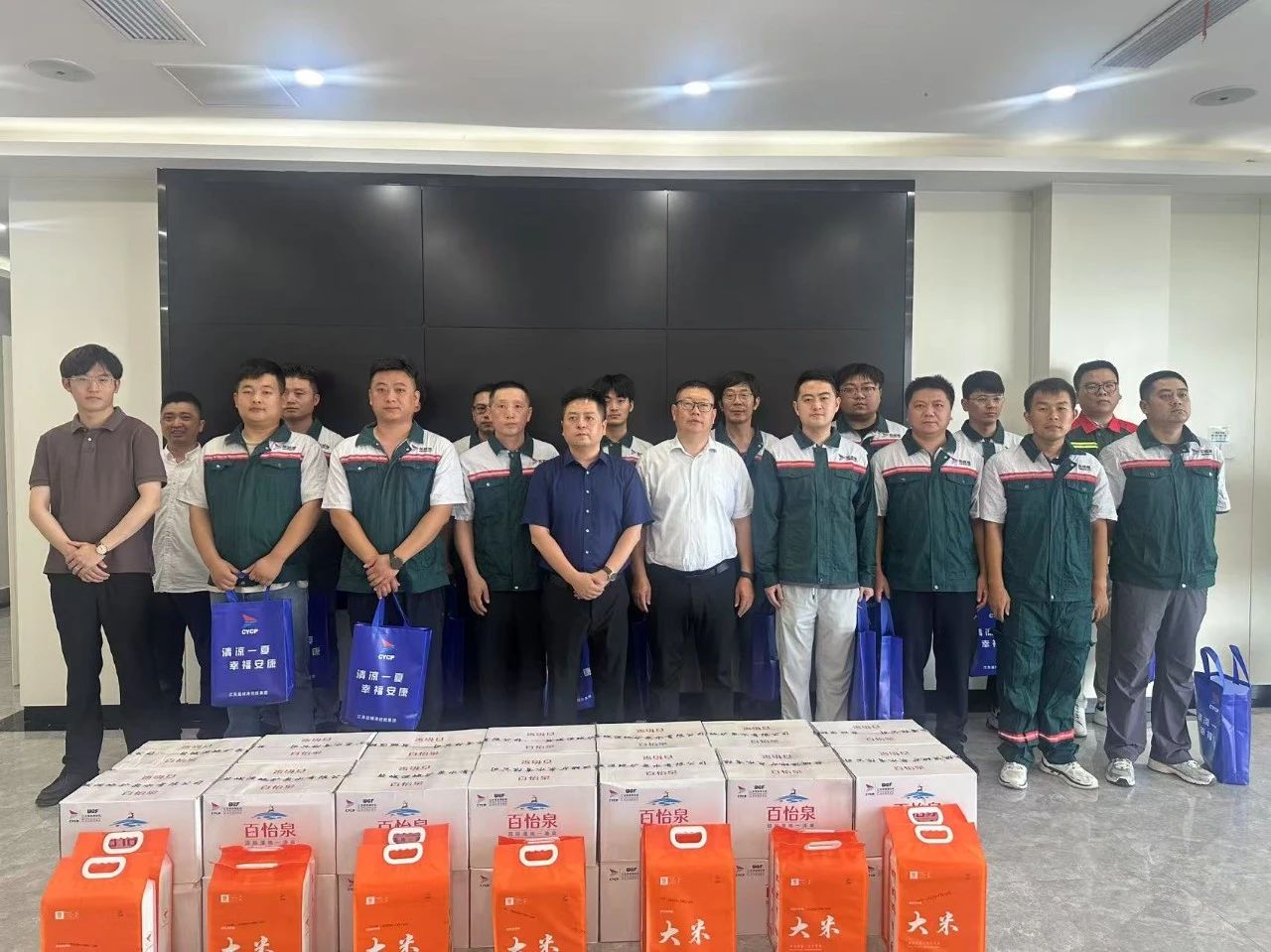 近日,受集團(tuán)黨委、董事會(huì)委托,集團(tuán)總經(jīng)理袁欣率隊(duì)前往大豐港區(qū)邊檢站和通用碼頭,為堅(jiān)守在高溫下的職工送去關(guān)懷與清涼,切實(shí)保障高溫環(huán)境下一線職工的勞動(dòng)安全與身體健康。