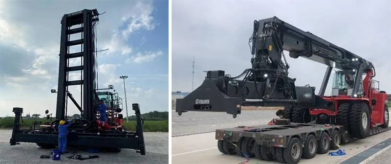集裝箱堆高機和正面起重機廣泛用于碼頭、堆場的集裝箱裝卸、空箱堆疊、水平運輸?shù)龋哂袡C動靈活、操作方便、穩(wěn)定性好、輪壓較底、堆碼層數(shù)高等優(yōu)點。