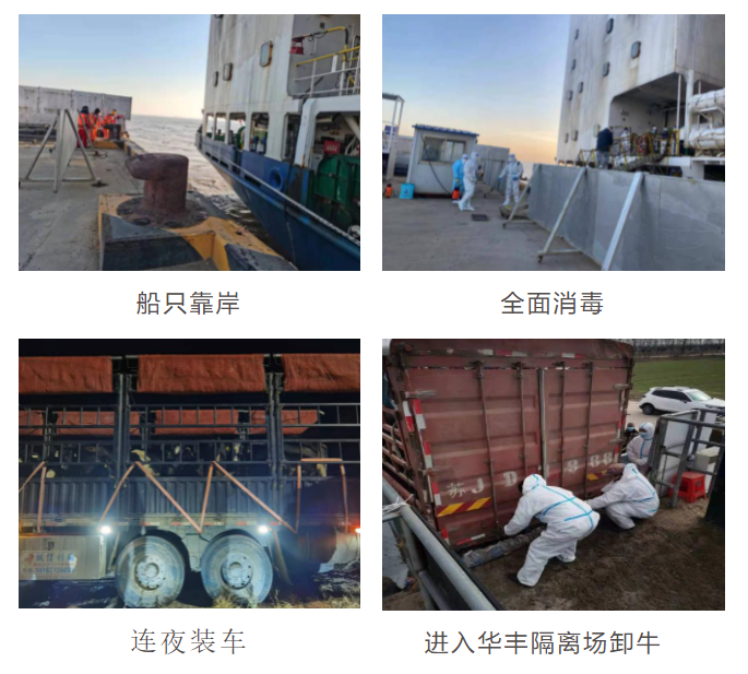 船舶靠岸后,工作人員積極搶抓時間,從27日下午17時至28日下午14時,始終堅守崗位連續(xù)工作近24小時,協(xié)同第三方認(rèn)真組織開展防疫、消毒措施,在最短時間內(nèi)完成了卸牛、運(yùn)輸及種牛進(jìn)場工作,為今年的種牛隔離業(yè)務(wù)畫上了圓滿的句號。