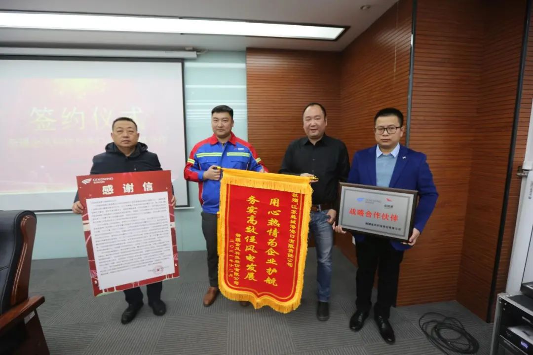 簽約前,金風(fēng)科技向港口公司贈送錦旗和感謝信,對港口公司一如既往為企業(yè)發(fā)展提供高效、便捷的物流服務(wù)表示感謝。