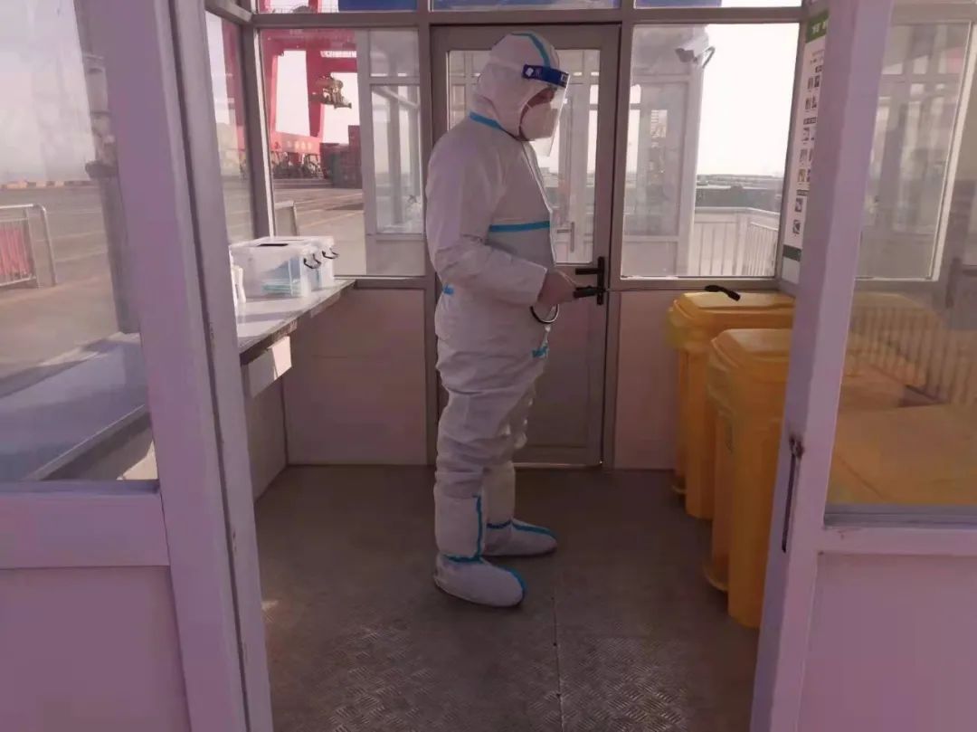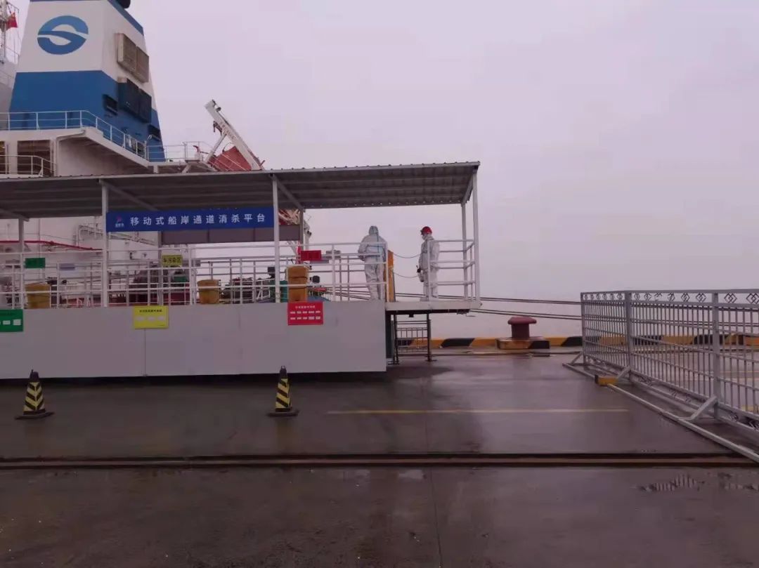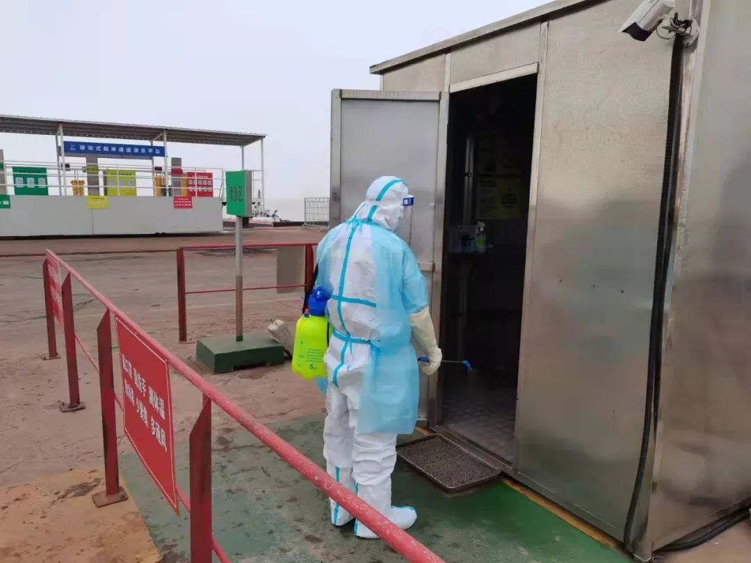 嚴格執(zhí)行人員準入制度,進出人員需佩戴口罩,并進行體溫測量、信息登記、蘇康碼及行程碼核查。安排專人定時對碼頭登梯口、防疫值守崗亭、脫卸區(qū)、專班集中居住區(qū)、專班人員運輸車輛、電梯、門把手、食堂等重點場所進行清潔消毒。碼頭設(shè)立固定的巡查人員24小時巡查,同時外輪靠泊期間,嚴格落實卡口、登輪梯口24小時專人值守,強化梯口管理,對所有登輪人員進行核實登記,監(jiān)督人員防護措施落實情況,凡是通過梯口人員,必須提供48小時內(nèi)有效核酸檢測證明、疫苗接種證明。