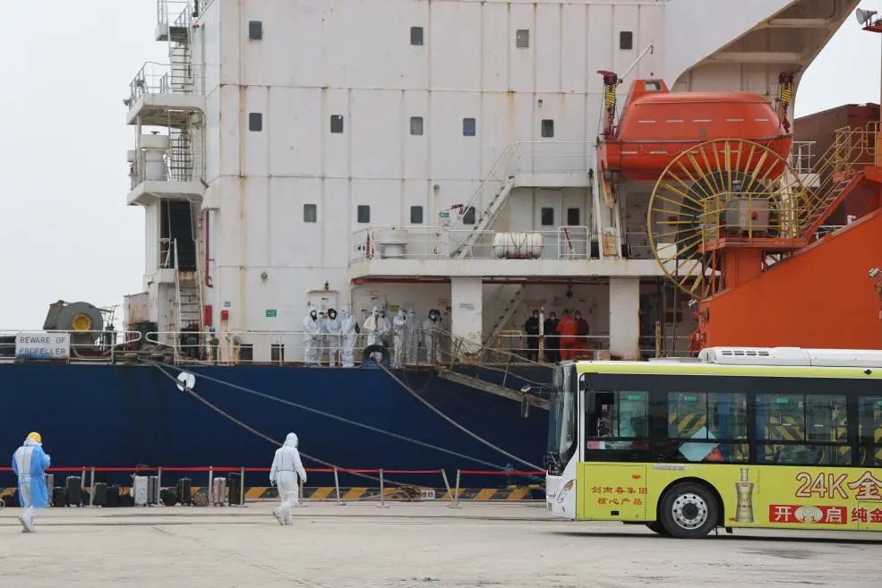 為確保中國船員換班工作“零等待”“零延時”,濱海港區(qū)第一時間啟動船員換班閉環(huán)管控工作流程和應急處置流程,與濱??h聯(lián)防聯(lián)控機制各成員單位協(xié)同配合,確保換班中國船員自國門至家門的全程閉環(huán)管理。讓船員感受到回到家的溫暖。