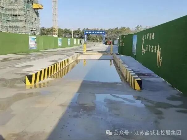 工程車駛?cè)腴L方形水池,兩側(cè)黃黑警示樁如衛(wèi)士列隊。這里是車輛的“美顏艙”!車輪裹挾的泥土被水流循環(huán)沖刷,污水沉淀后重復(fù)利用,確保每一輛出場車輛都“凈身出戶”,絕不讓泥漿污染城市道路。圍擋上“文明健康 有你有我”的標語,正是它的環(huán)保宣言。
