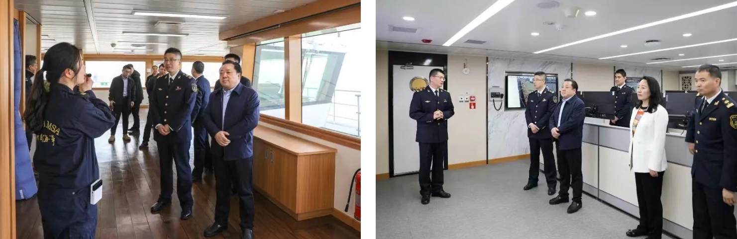 簽約儀式前,周正雄一行參觀了中國海事測繪旗艦“海巡08”輪,詳細了解測繪中心發展歷程及先進海測裝備。