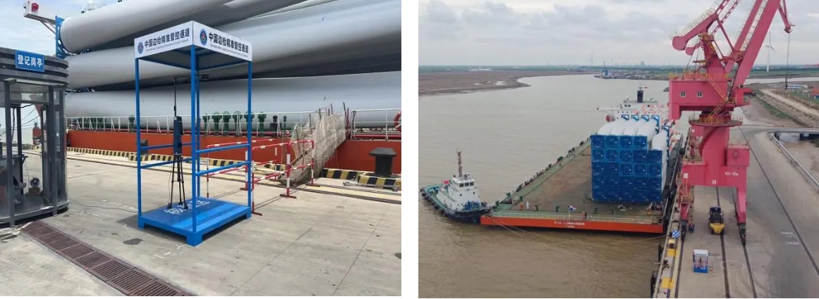 深化服務舉措,問題解決“快車道”。為最大限度壓縮船舶在港停泊時間,助力這批口岸“最多葉片”順暢通關,射陽港區提前對貨物大小、碼頭場地、運輸環境等綜合考量后,運用“邊運抵邊裝船”模式助力貨物高效出海。“在‘邊運抵邊裝船’模式下,貨物進港后可直接開到碼頭前沿進行裝船,無需等待貨物全部集港完畢,經海關、邊檢實地驗核后即視為貨物運抵,緩解壓港、壓車情況,作業效率可以提升超30%。”射陽港區碼頭負責人表示。