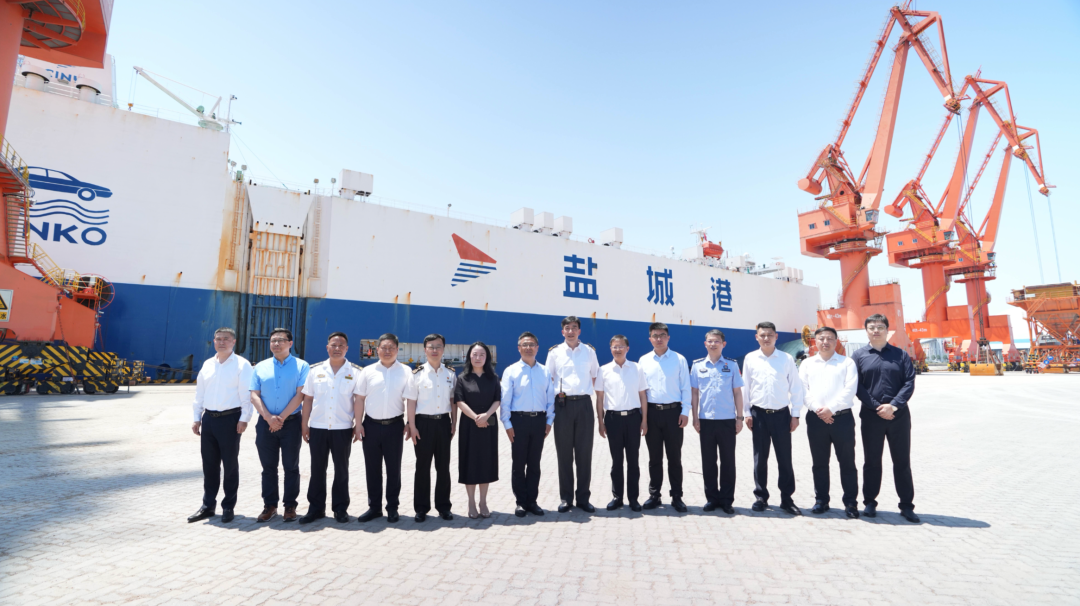 黃海新區(qū)、濱海縣、鹽城港集團(tuán)主要領(lǐng)導(dǎo)和相關(guān)負(fù)責(zé)同志,市“一關(guān)兩檢”相關(guān)負(fù)責(zé)人親臨碼頭現(xiàn)場,一同觀看了汽車滾裝全流程作業(yè)。