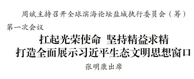 周斌指出,全球?yàn)I海論壇會議是鹽城歷史上承辦等級最高的會議,是鹽城建設(shè)綠色低碳發(fā)展示范區(qū)交出的第一份年度答卷,必須凝聚強(qiáng)大合力,出色、出彩、圓滿完成大會各項(xiàng)任務(wù)。要扎實(shí)推進(jìn)工作,倒排時間節(jié)點(diǎn),進(jìn)一步壓緊壓實(shí)各方責(zé)任,全身心投入大會籌辦攻堅(jiān)仗。要強(qiáng)化協(xié)同配合,清單化、項(xiàng)目化、節(jié)點(diǎn)化推進(jìn),匯聚起萬眾一心、齊創(chuàng)盛會的磅礴力量。要營造濃厚氛圍,精心策劃主題,講好鹽城故事,激發(fā)城市活力,真正實(shí)現(xiàn)“辦好一個會、提升一座城”。