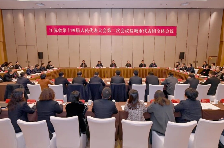 江蘇省第十四屆人民代表大會(huì)第二次會(huì)議將于1月23日上午在南京開(kāi)幕。22日晚,鹽城市代表團(tuán)在駐地召開(kāi)全體會(huì)議,傳達(dá)學(xué)習(xí)省兩會(huì)黨員負(fù)責(zé)同志會(huì)議精神和省委書(shū)記信長(zhǎng)星講話要求,推選代表團(tuán)團(tuán)長(zhǎng)、副團(tuán)長(zhǎng),宣布小組召集人名單,審議有關(guān)草案。