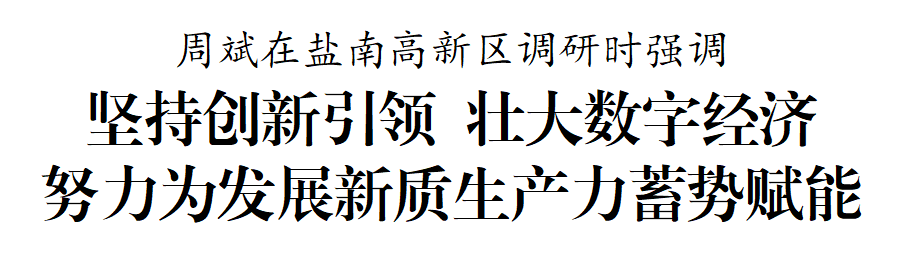 6月19日下午,市委書記周斌到鹽南高新區調研數字經濟和機器人產業發展工作。他強調,要認真學習貫徹習近平總書記關于發展數字經濟的重要論述,把握數字時代新趨勢,按照中央精神和省市有關部署要求,加快推動數字產業化、產業數字化,培育壯大數字經濟,促進“數實融合”發展,更大力度建設“數字鹽城”,為發展新質生產力增添新動能。