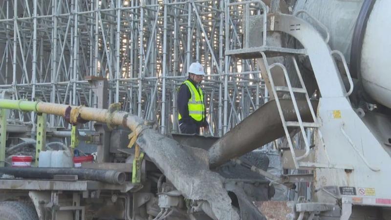 據了解,本次采用支架現澆法進行施工,混凝土方量868.88立方,整體采用盤扣支架體系一次澆筑。由于內部鋼筋較多,施工環境狹小,增加了工作難度。為保證連續梁的整體質量,該工程準備工作繁復,需多次對其進行測量避免澆筑施工時影響整體穩定性。