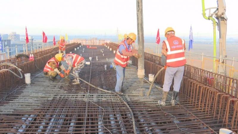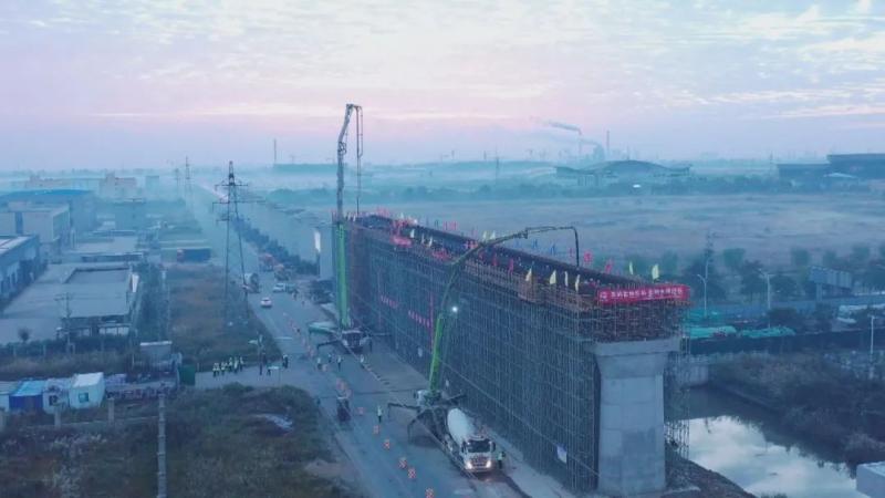 “我們承建的大豐港特大橋全長17.949公里,目前項目首個支架現澆梁一次性澆筑已完成,連續梁澆筑的完成標志著大豐港鐵路支線施工建設進入新的階段?!贝筘S港鐵路支線工程3標經理部現場負責人陳甫軍告訴記者。