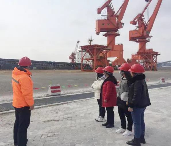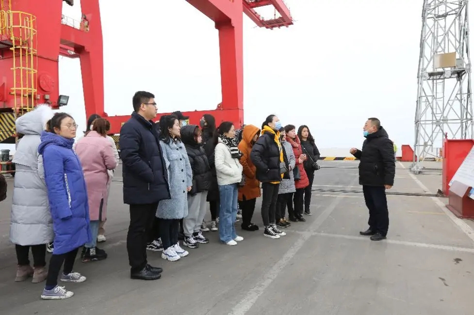 濱海港區(qū)單位女職工在生產(chǎn)經(jīng)營部工作人員的帶領(lǐng)下,學習門機進行裝卸作業(yè),了解碼頭從船舶靠岸的前期準備到靠泊后的裝卸作業(yè)的全部流程。