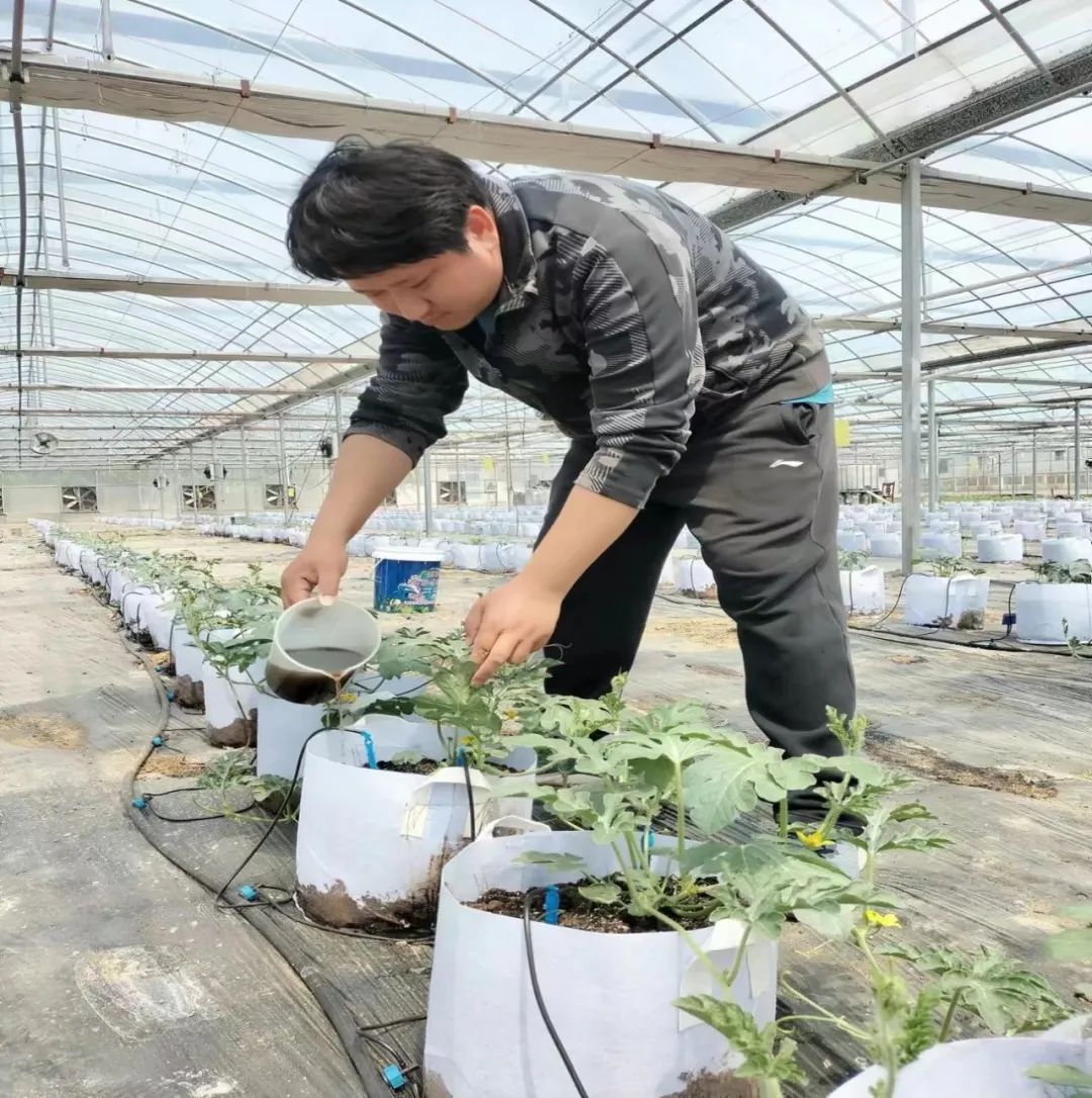 在探索西瓜重茬防治方法過程中,突破傳統(tǒng)思維模式,采用無土栽培種植方式,結(jié)合水肥一體化滴灌系統(tǒng),實現(xiàn)西瓜健康茁壯生長。通過更換栽培基質(zhì),從源頭控制,徹底解決病原菌因環(huán)境篩選大量繁殖問題,調(diào)和了西瓜年年輪換土地導(dǎo)致適宜種植西瓜的土地不足而限制西瓜產(chǎn)業(yè)發(fā)展的矛盾。