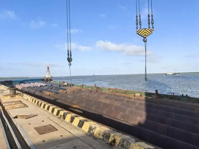 面對(duì)密集到港船舶和緊張船期,港區(qū)科學(xué)統(tǒng)籌作業(yè)資源,優(yōu)化物流組織,通過整合路線、強(qiáng)化聯(lián)運(yùn)、推廣直取直裝等方式,打通銜接堵點(diǎn),實(shí)現(xiàn)“車船直裝、貨不落地”的高效轉(zhuǎn)運(yùn)模式。近日,光伏管樁項(xiàng)目第8船作業(yè)圓滿完成,展示了港區(qū)高效協(xié)同、精準(zhǔn)作業(yè)的硬核實(shí)力,為后續(xù)新業(yè)務(wù)開展樹立了標(biāo)桿。
